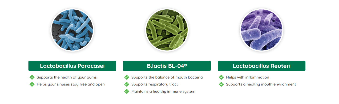 It’s the only product in the world with a unique blend of 3.5 billion probiotics and nutrients, specially designed to repopulate your mouth with good bacteria.